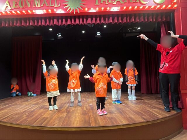 ステージでダンスを披露します。 2回公演のエンディング回なら2曲踊れるので、目立ちたがり屋な子には最高です! (※我が家の恥ずかしがり屋な息子には少しハードルが高かったようです笑)