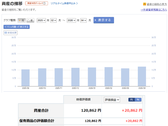 2025年9月:10万円入金 2026年4月:約12万円に